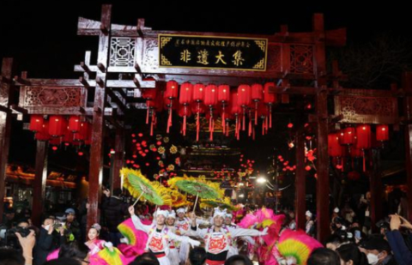 把丰厚的历史文化资源用起来,让不会说话的古迹活起来,榆林下了一番苦功夫。2023年2月,首届中国非遗保护年会非遗大集在榆林开集,60万人齐聚榆林老街。本次大集有别于传统会展设计形式,将沉浸式体验与传统元素融为一体,以集市形式汇聚集了全国各地好吃、好玩、好看的非遗体验内容,以“科技+文化”营造互动消费氛围,给参观者带来一场非遗主题的深度体验。