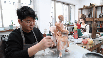 2013年,一个憨态可掬的“梦娃”在天津泥人张彩塑工作室诞生。这件被赋予了时代内涵的艺术形象,至今依旧充满活力,深入人心。一代代工匠守正创新,一件件泥塑镌刻着时代记忆,给人以思想和智慧上的启迪。