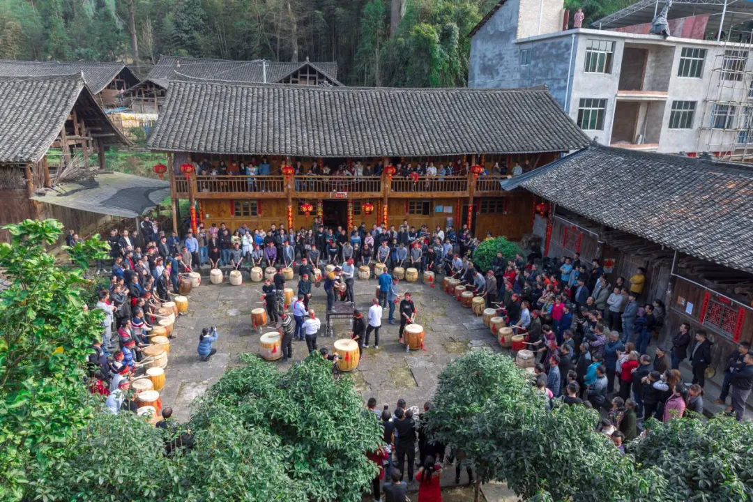 思州战鼓,又叫“夜郎战鼓”,是流传于黔东南苗族侗族自治州岑巩县及其周边地区的一种群体性、多元性打击乐,因战国时期夜郎军队用于指挥军队、鼓舞士气而得名,是该地区苗族、侗族、土家族等各族人民长期以来共同创造形成的一种独特的文化活动,具有人类学、民族学、民俗学、精神铸造价值,和振奋人心、增进友谊、凝聚力量的效果,有着十分广泛的群众基础。