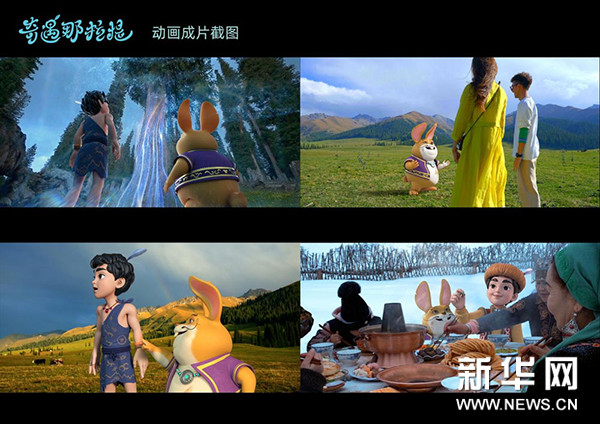 《奇遇那拉提》以那拉提草原为叙事基底,讲述了主人公波贝克与兔派等伙伴们的奇幻冒险故事。剧情跨越了那拉提草原的一年四季,不仅通过镜头捕捉了四季流转、万物生机的瞬间盛景,更深度植入了当地的音乐、舞蹈、文学、民俗风情和特色美食等文化元素,通过动画角色的生动表演,拉近了与观众的距离,全面展现了新疆草原的自然之美与文化底蕴。该片在技术上创新性地采用了“CG技术+实景拍摄”制作模式,充分保留了大美新疆自然资源的鲜活性。