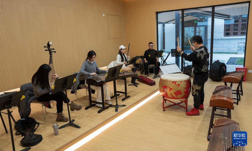 1月19日,在苏州市工人文化宫的职工音乐厅,苏州市职工艺术团繁星乐团在排练年会表演乐曲《九州同》。