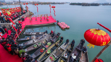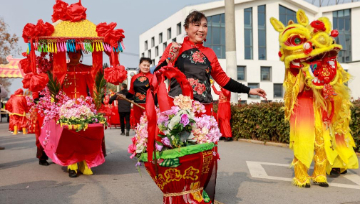 2月2日,在江苏省连云港市赣榆区墩尚镇,人们进行民俗“踩街”表演。