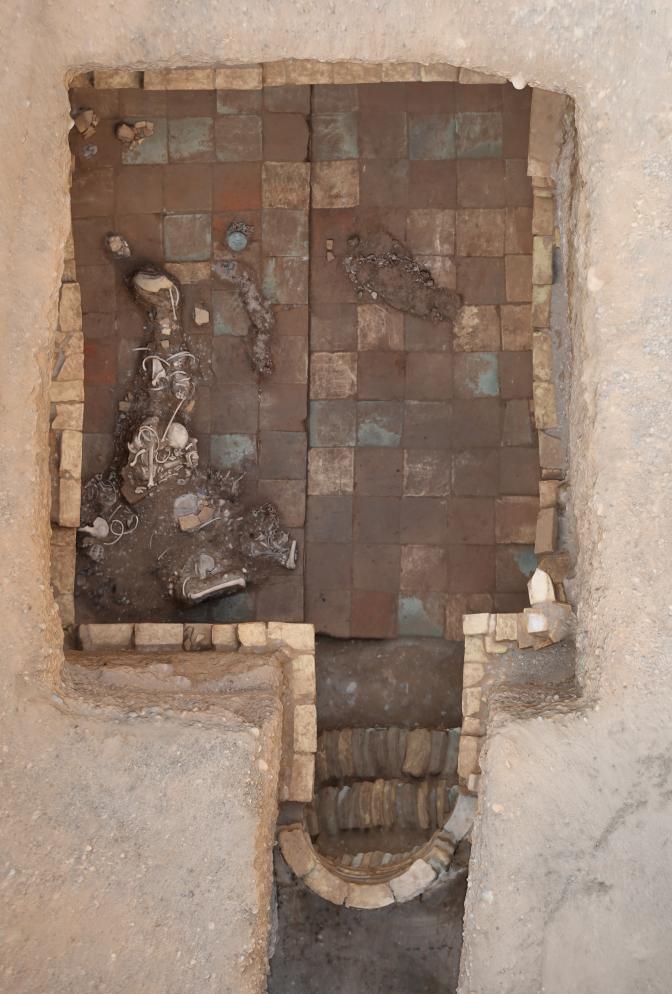 库车市友谊路墓群考古项目负责人阿里甫江·尼亚孜介绍,这是目前新疆南部地区发现的唯一一座唐代砖室墓,为实证唐中央政权对新疆有效管辖治理提供了重要的考古证据。