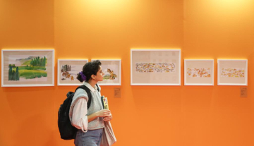 4月14日,在意大利博洛尼亚,观众参观第63届博洛尼亚国际儿童书展中国儿童图画书优秀作品展。