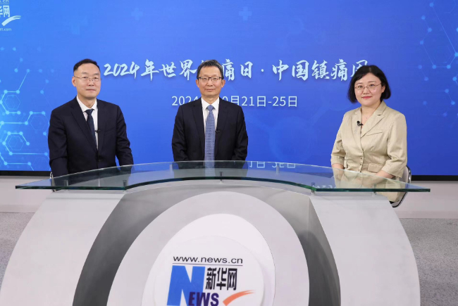 中日友好医院疼痛科主任樊碧发教授(左二)、北京大学第三医院疼痛科主任李水清教授(左一)做客新华网
