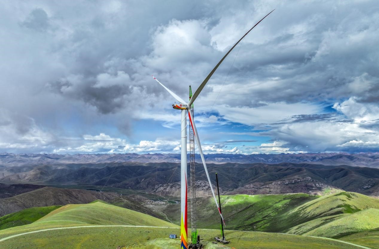 世界最高海拔风电站—八宿100兆瓦保障性并网风电项目完成风机吊装作业 宋先吉摄