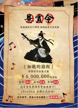 “如歌的旅程”是一场面向全球音乐人,征集全新“城市主题音乐”的大赛,旨在用音乐传递中国不同城市的人文风韵,并让好音乐成为连接旅人与城市的情感纽带,丰富广大用户的“音乐+旅行”场景体验。本次大赛总奖金池高达600万元,征集作品不限城市、不限创作形式,更特邀嘉宾方文山及资深评委姚谦、郑楠、陈牧荻、于文文进行权威评选,自由度高、奖金池高、专业性高。