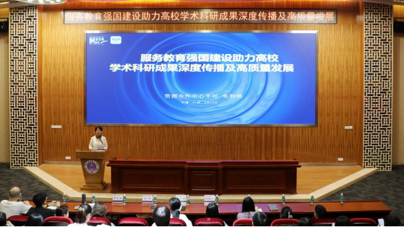 "图片来源:江西科技师范大学学术中国资源合作中心主任朱利娟立足人工智能发展背景,围绕高校学术成果传播与学术诚信建设作主旨报告。"