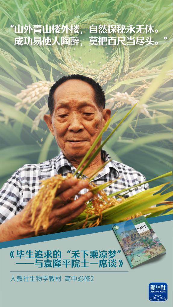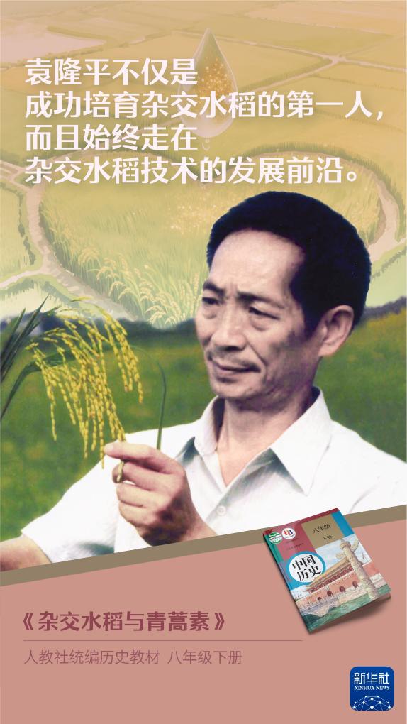 “杂交水稻之父”袁隆平院士离开我们已经四年了。“我毕生的追求就是让所有人远离饥饿”“成功易使人陶醉,莫把百尺当尽头”“他将一生都奉献给了杂交水稻事业”……课本里关于袁隆平的这些话,让我们一遍遍感念他平凡而伟大的人格。今天,让我们跟着课本,一起缅怀袁老!