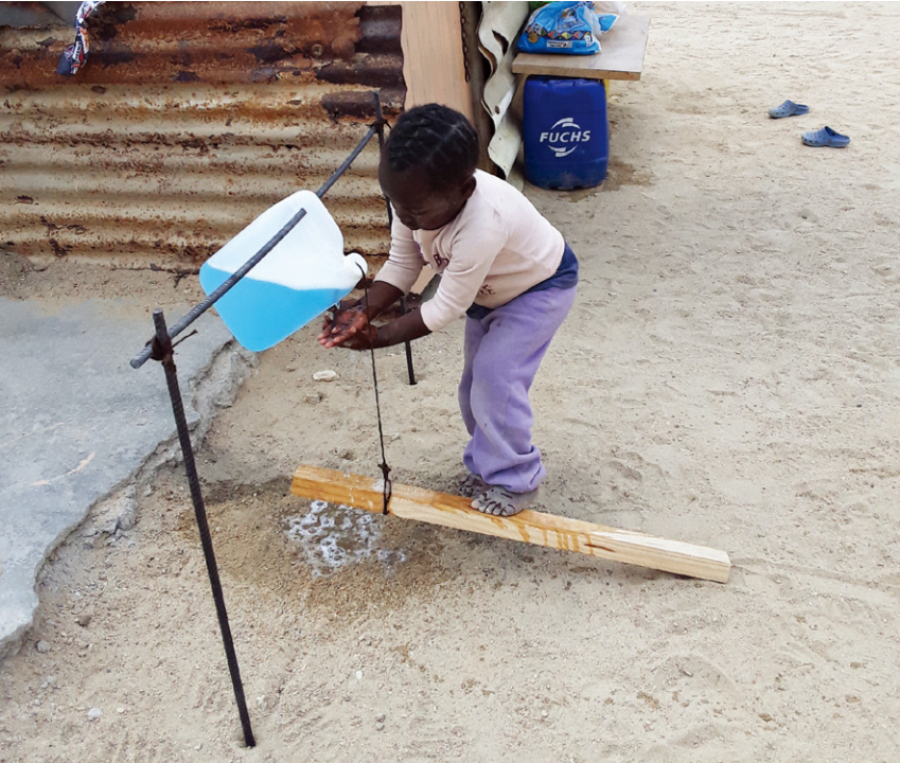 图为中核集团控股的罗辛铀矿为当地制作简易洗手消毒装置。(中核集团供图)