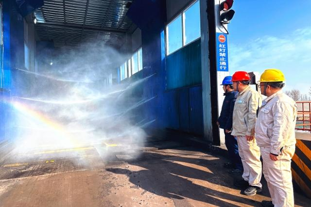 如今,当运煤车辆驶入冲洗通道,一场“智慧洗礼”自动开启。地感线圈在0.5秒内完成识别,语音系统同步提示司机规范停车;高压雾化喷头瞬间启动,20至30兆帕的水流经喷嘴雾化成3至50微米的超细水雾颗粒,高效剥离轮胎、底盘、车厢的煤尘;若出现压力异常、喷头故障等情况,系统将在3秒内触发分级预警,确保问题及时处置。