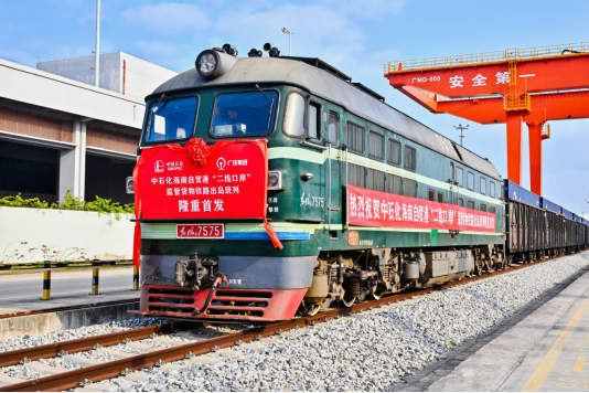 3月18日,海南自贸港全岛封关后的首个铁路出岛班列从海口铁路口岸发车,驶向广州国际港。该班列承运的货物为中国石化海南炼化加工增值后的海关监管类化工产品,由中石化化工物流有限公司协同中国铁路广州局集团有限公司进行物流运输,标志着海南、广东两地间再添一条高效、稳定、绿色的物流大通道。