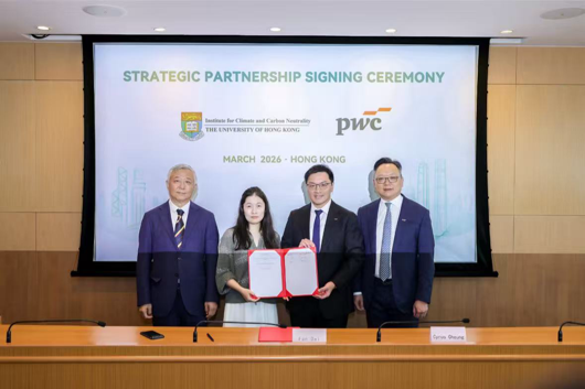 近日,在 2026 香港气候周举办期间,香港大学气候与碳中和研究院与普华永道(PwC,港称罗兵咸永道)正式签署合作谅解备忘录,双方立足产学研深度融合,聚焦人才培养、区域碳转型、学术科研协同等核心领域展开全方位战略合作,凝聚学界与业界专业合力,以创新实践推动绿色低碳发展,助力香港建设国际绿色金融枢纽,为全球气候治理贡献协同发展力量。