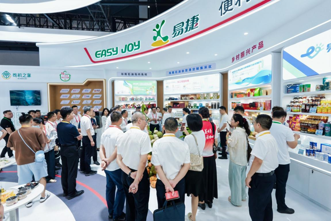 “油气氢电展示区”聚焦能源转型与科技赋能,展示智能加油机器人、AI数字员工等前沿数智化应用,通过沉浸式体验让观众直观感受到科技为能源服务带来的便捷与高效;生动呈现氢能全产业链布局、光储充检一体化等绿色能源重点项目,展现中国石化在清洁能源领域的深耕细作与创新突破。“易捷服务展示区”集中展示司机之家、综合汽服、咖啡餐饮等多元业态,同步陈列易捷自有品牌、全国特色商品及海南自由贸易港定制产品,展现“加能站+N”的全生态服务模式。