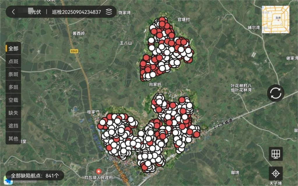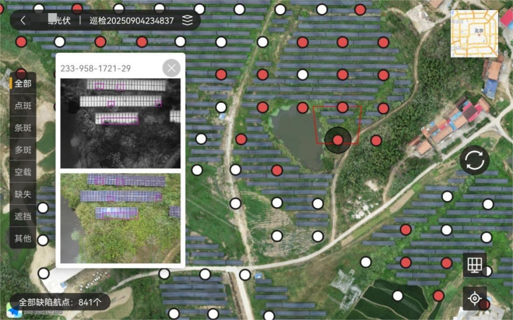 数据不会说谎。2025年,该技术在中电大别山竹瓦50MW光伏电站的全面巡检中,自动识别并精准定位缺陷619处。除阴影遮挡的缺陷外,还检出热斑、空载等典型故障,为场站快速消缺提供了依据,助力场站年发电量提升约50万千瓦时。