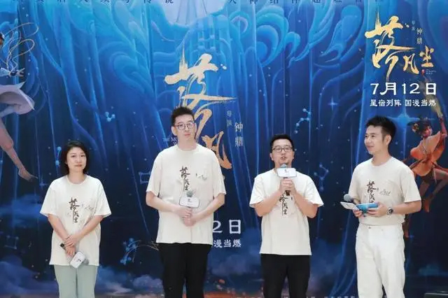观众席中还有一位特殊嘉宾,他就是负责制作了片中两段二维片段的动画导演毕维,同样是第一次观看完整影片的他非常激动:“希望我们做的片段没有拉垮……我觉得做动画片非常不容易,大家能坚持五年把这个片子做出来,真的非常荣幸能参与到这么优秀的作品中。”北京大学中文系博士、对外经贸大学硕导、《长安三万里》官方诗集作者韩潇老师则从传统文化角度给予了本片极高的评价:“《落凡尘》打动我们内心很重要的点是因为抓住了中华文化的核心,《落凡尘》对应的三个字叫做‘望星空’,从汉诗、唐诗,到明清小说中丰富的神仙宇宙,中华民族在文化中对浩瀚星空、对伟大的宇宙有着无穷的向往和美好的想象。”