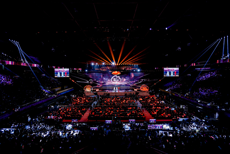 无畏、花海、九尾三位电竞选手手持奖杯亮相,光影将现场渲染成对抗感十足的蓝紫双色,观众仿佛置身于充满力量感与荣耀感的“征途共鸣场”之中。