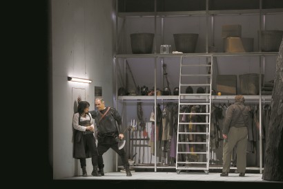 “这一版《女武神》舞美布景充满哲思。”许忠说。舞台设计卡尔海因茨·贝尔将《女武神》的舞台空间形容为“流动的过程”。舞台上,空间的转换不断发生,不同场域在连续的过渡中彼此连接。看似传统的写实场景很快被打破,一些场景中许多个空间同时叠加,有时同一空间在不同幕之间重复使用,但状态不断变化。“观众只需保持兴趣、沉浸感受,便能捕捉每个角色与空间独有的‘跌落时刻’。”