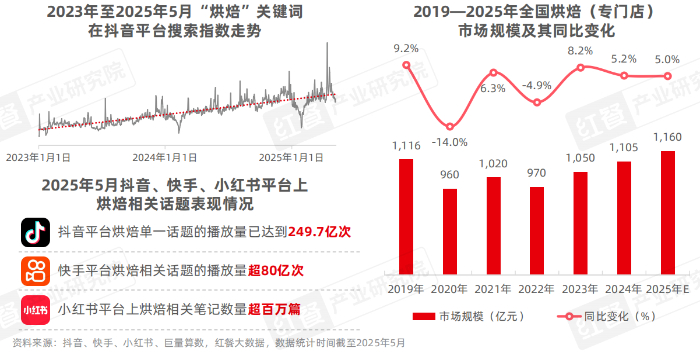 近年来,随着消费者追求生活品质的意识不断提升,凭借烘焙产品便捷、丰富、高颜值和具备情绪价值等特性,烘焙赛道的热度持续上升,市场规模逐渐扩大。
