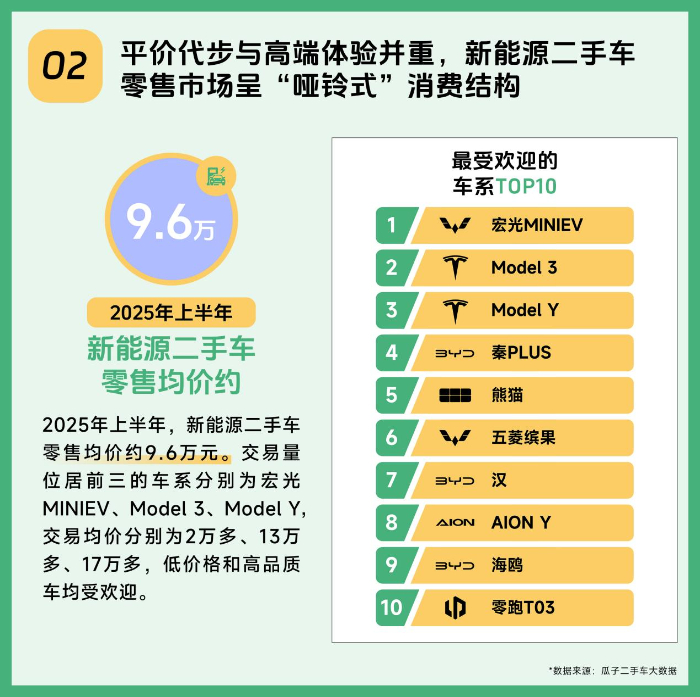 平价代步与高端体验并重,新能源二手车零售市场呈“哑铃式”消费结构