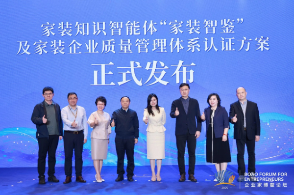 新华网人居生活事业部总经理宁畅,市场监管总局认研中心副主任王茂华,市场监管总局认研中心宏观发展研究部主任王宇,中装协住宅产业分会秘书长胡亚南,全联环境服务业商会室内车内环境管理专业委员会主任赵天顺,北京五洲恒通认证有限公司李琼,南京市产品质量监督检验院赵颖峰,上海聚通装饰集团有限公司施金辛等嘉宾登台,携手正式发布《家装知识智能体“家装智鉴”及家装企业质量管理体系认证方案》。