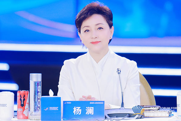 图为资深媒体人、阳光媒体集团董事长杨澜在2025企业家博鳌论坛主论坛圆桌会议上发言