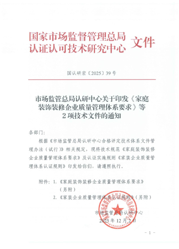 另外,家庭装饰装修企业质量管理体系认证方案也在论坛进行了发布。该方案由《家庭装饰装修企业质量管理体系要求》及配套认证规则组成,由市场监管总局认研中心组织联合体认证机构共同制定并发布。