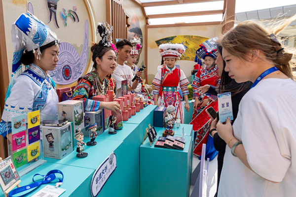 12月3日,在2025企业家博鳌论坛国民共“拾”光市集,参会嘉宾正在了解非遗文创。新华网记者 钟奕摄