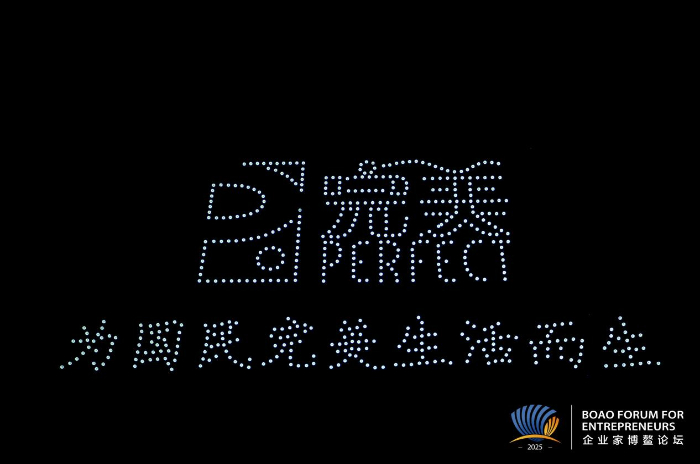 系列活动期间,完美公司点亮博鳌夜空,2025架无人机在博鳌夜空绘就璀璨画卷,科技与人文交融、光影与初心相映。
