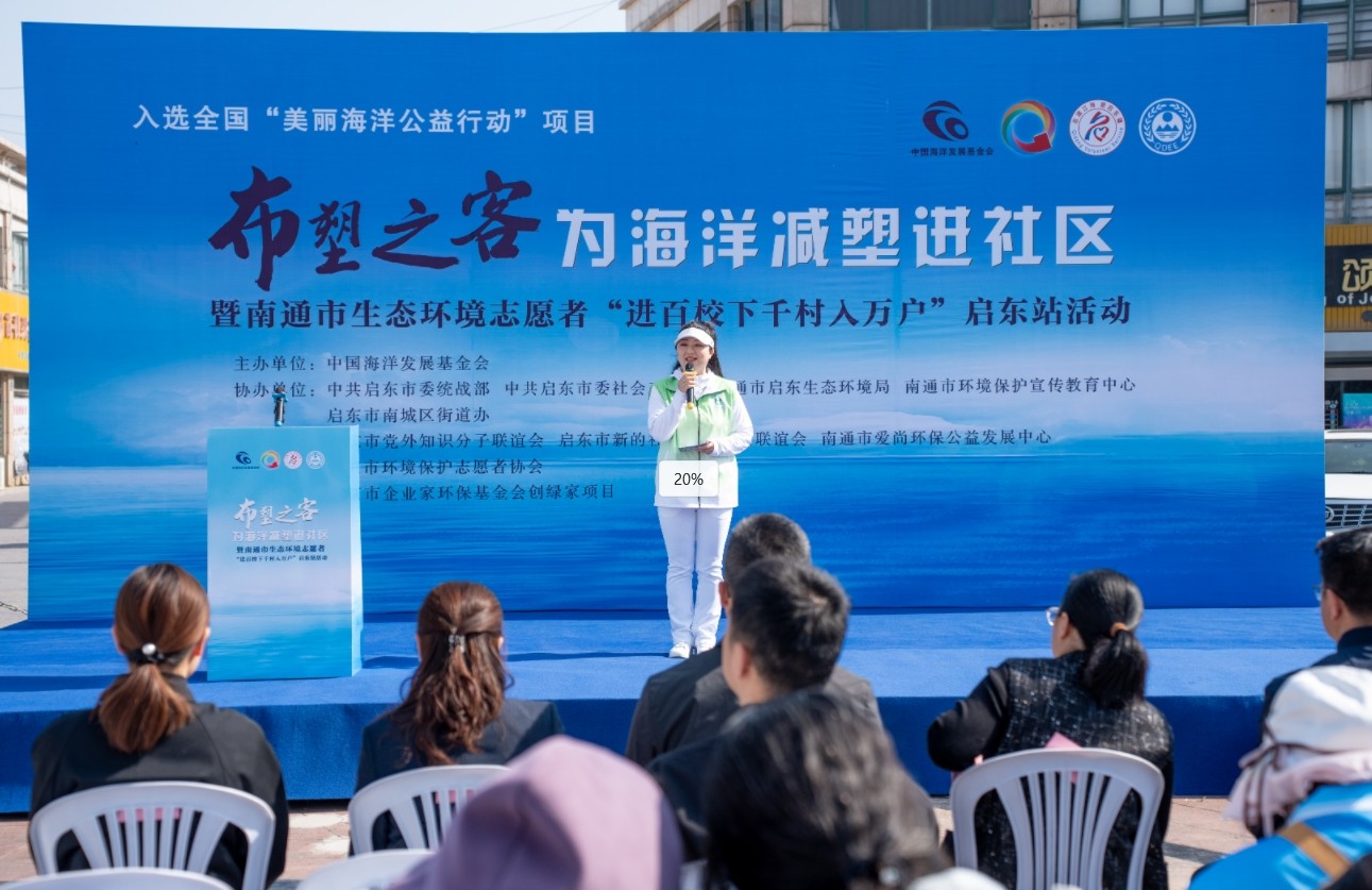 4月8日,由中国海洋发展基金会主办的美丽海洋公益行动—“布塑之客”为海洋减塑进社区暨南通市生态环境志愿者“进百校下千村入万户”启东站活动在启东市南苑一村社区广场举行。活动通过政企社联动,号召社会各界共同守护海洋生态,共建清洁美丽家园。