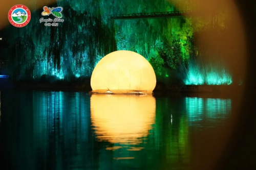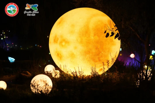 同时,一座直径达5米的发光月亮灯将悬浮于蝶湖水面,与水中倒影及北广场的实体月球模型遥相呼应,共同构成“双月同辉”的奇幻盛景。夜幕降临,湖中月亮灯与湖畔点缀的小型月亮灯、蝴蝶灯一同点亮,营造出如梦如幻的夜间游园体验。围绕湖畔设置的多个发光月球装置内置灯谜二维码,游客可扫码参与互动,在赏月、玩月、解谜的过程中,体验“月下重逢”的传统文化与现代趣味结合的乐趣。一系列活动展现了巩留"以文促旅、以旅彰文"的显著成效。