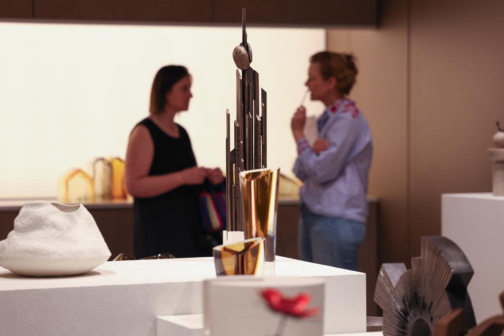 4月21日,在意大利米兰国际会展中心,参观者在米兰家具展上观看展品。