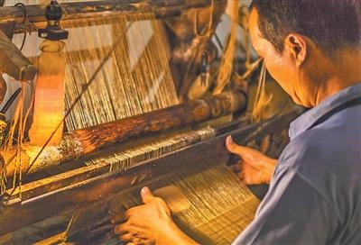 “绩纱时,将苎麻卷成一缕缕,放入清水盆中,用手指梳成一根根细丝。”夏布织造技艺区级代表性传承人黄维唯介绍,“丝丝入扣”一词,正源于夏布织造中的“穿筘”工序——将细密经线穿过梳筘的微小筘眼,需极高技艺与耐心。荣昌夏布以苎麻为原料,经打麻、绩麻线、穿扣、刷浆、梳布、织布、漂洗、印染等20余道纯手工工序织就。成品夏布细密平整,色泽莹洁润滑,坚韧耐用,号称“天然纤维之王”。