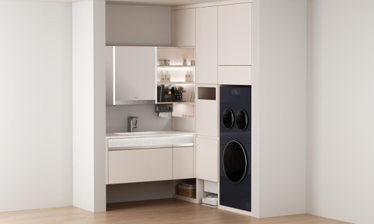 不仅如此,九牧支持家电融合和个性定制,用户可依据习惯、偏好实现九牧浴室柜个性化组合定制,自由选配15.6寸智能镜、低温存储等智能功能模块,还能融合洗烘设备等大小家电,真正实现“一对一,定制家”。这些创新技术和应用,让九牧智能浴室柜成为集健康管理、娱乐互动、生活指南、售后维保于一体的贴心智能生活助理。