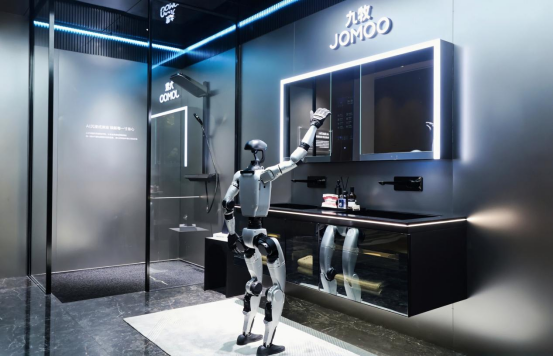 机器人在九牧AI BATH场景与浴室柜“互动”