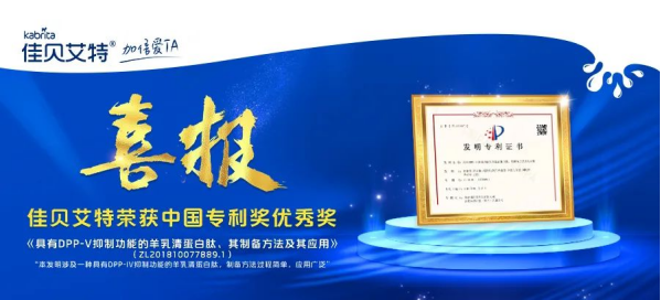 近日,中国专利奖评审办公室发布《第二十三届中国专利奖评审结果公示》,由澳优旗下羊奶粉品牌佳贝艾特申请的《具有DPP-V抑制功能的羊乳清蛋白肽、其制备方法及其应用》发明专利(以下简称“发明专利”)荣获“中国专利奖优秀奖”。中国专利奖首现羊奶行业发明专利,佳贝艾特填补了羊奶行业在中国专利奖方面的空白。