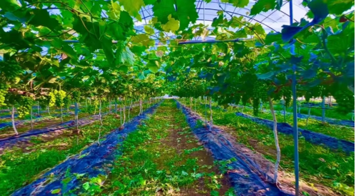 梁山县韩垓镇红心村的阳光玫瑰葡萄已进入挂果阶段,一串串绿色的小“玛瑙”挂满了葡萄架,颗颗翠绿长势喜人。“每亩正常情况下能产6000斤到8000斤阳光玫瑰葡萄,每亩地可以增收3万元以上。”红心村葡萄种植户刘承云开心地向前来检查的韩垓镇乡村振兴专项检查组干部说。