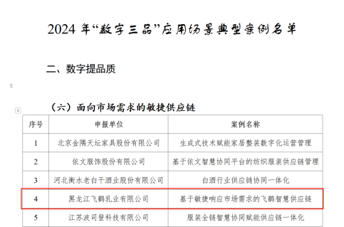 在数字经济蓬勃发展的当下,实体产业正经历着前所未有的变革。工信部近期公布的2024年“数字三品”应用场景典型案例中,黑龙江飞鹤乳业有限公司的“基于敏捷响应市场需求的飞鹤智慧供应链”项目脱颖而出,成为“数字提品质敏捷供应链”的典范。