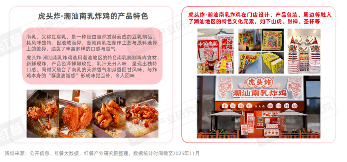 除了将炸鸡产品改良成更符合本土饮食偏好的中式风味外,市场上还涌现了一批专注于地域特色风味的炸鸡品牌,虎头炸·潮汕南乳炸鸡便是其中颇有代表性的品牌。