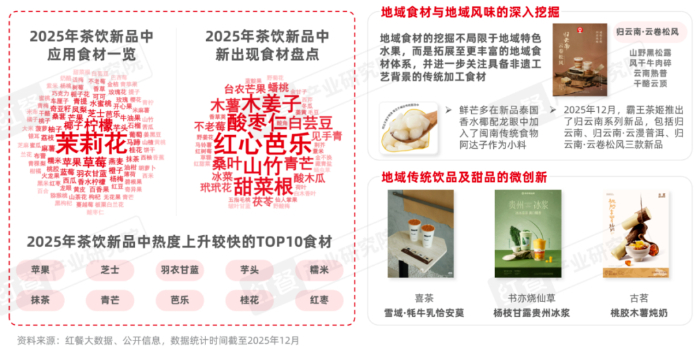 同时,地域特色挖掘进一步深化,茶饮品牌的创新方向不再局限于地域食材本身,而是延伸至地方传统饮品、非遗工艺及风味体系,并与地域文化相结合,推动产品的在地化表达。