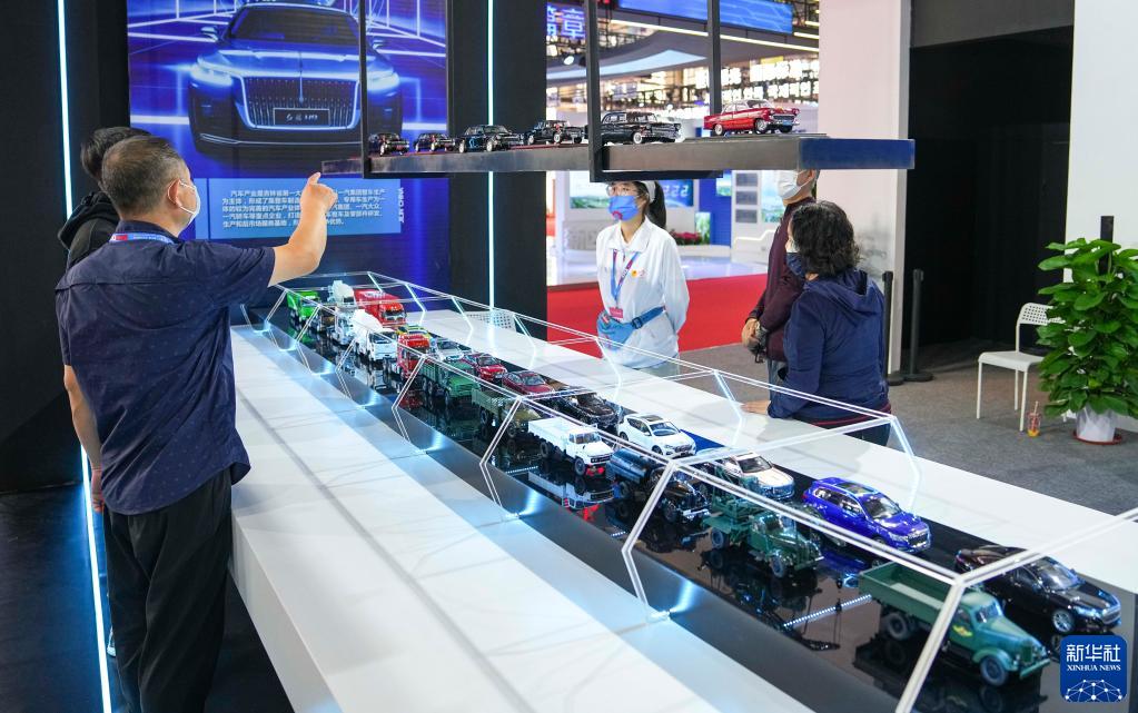 参观者在中国—东北亚博览会上参观中国一汽生产的车辆模型(9月24日摄)。新华社记者 许畅 摄