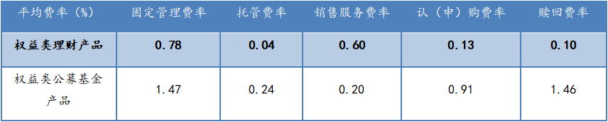可以看出,就投向权益类市场的资管产品而言,银行理财产品相较公募基金产品在费率上仍有显著优势。