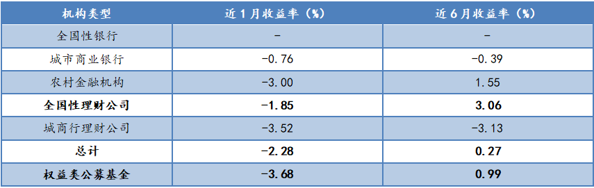 从不同机构类型来看,近6个月区间收益率最高是全国性理财公司,为3.06%,远高于全市场权益类银行理财产品的平均收益水平,与权益类公募基金对比则具有更为显著的长期收益优势。综合来看,在权益类资产投资领域,全国性理财公司凭借专业的投研团队、完善的投研体系及投资工具、严谨的风控措施,能够为投资者带来更为丰厚的长期持有回报率。