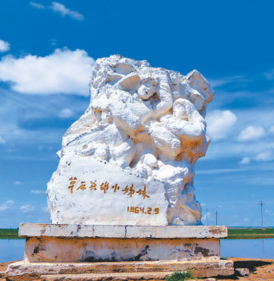 草原英雄小姐妹旧居前的雕塑。张 枨 秦文秀摄影报道