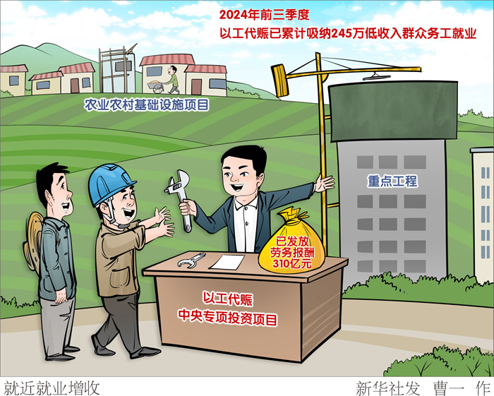 新华社北京11月4日电(记者陈炜伟、胡旭)记者4日从国家发展改革委了解到,国家发展改革委会同有关部门通过安排以工代赈中央专项投资项目,同步推动地方在重点工程和农业农村基础设施项目中大力实施以工代赈,前三季度已累计吸纳245万低收入群众务工就业,同比增长30.2%,已发放劳务报酬310亿元,同比增长22.7%。