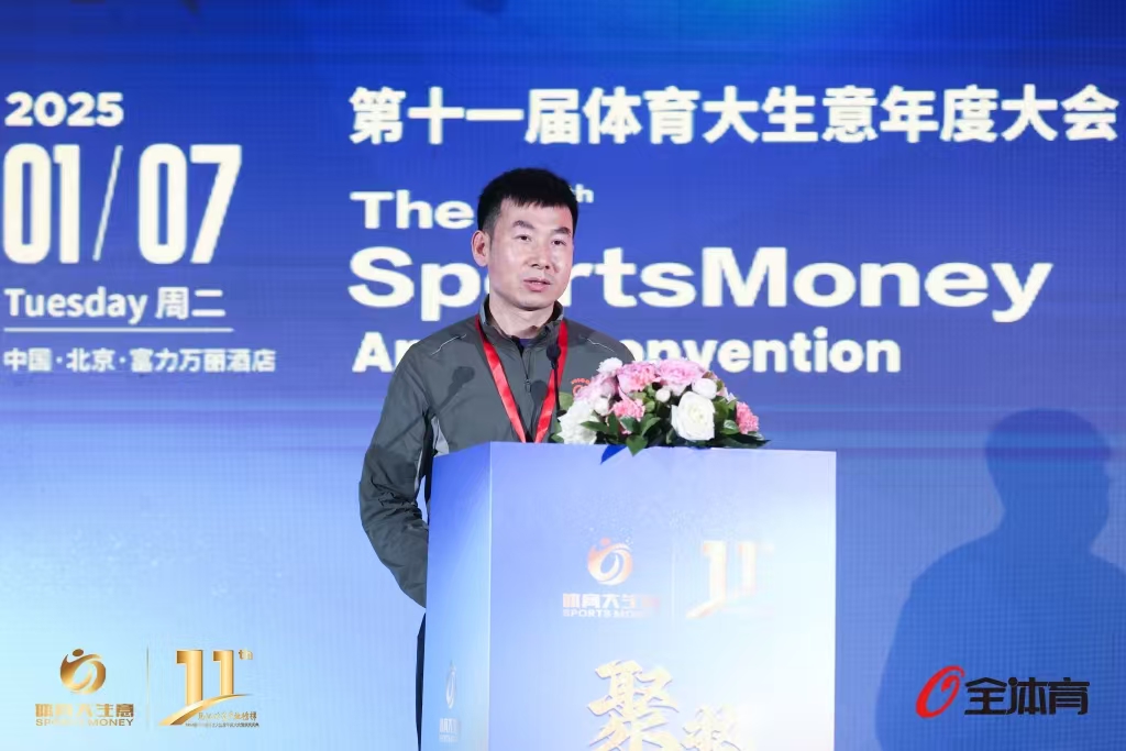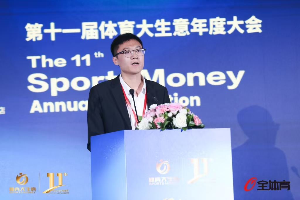 杜松玮在第十一届体育大生意年度大会上演讲。