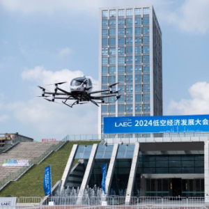 2024年9月6日,在安徽芜湖,一架低空飞行器在2024低空经济发展大会会场外进行飞行展示。新华社记者 傅天 摄
