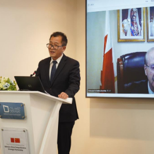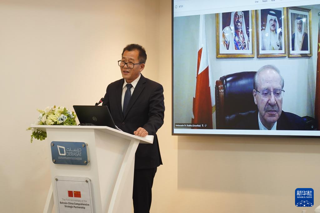 穆罕默德·谢胡在视频致辞中说,巴林国王哈马德去年5月访华期间,两国将双边关系提升为全面战略伙伴关系。一年来,巴中双边贸易额持续增长,双方在基础设施建设和联合投资方面取得了丰硕成果,巴林也成为“一带一路”倡议的重要合作伙伴。他相信研讨会能成为两国专家学者深入对话交流的平台,期待相关成果能进一步巩固两国人民友谊。