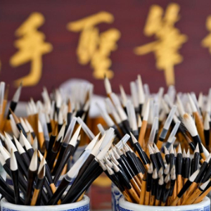 这是江西省南昌市进贤县文港镇一家笔庄内摆放的毛笔成品(7月8日摄)。