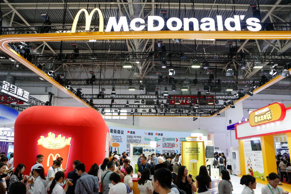 这是7月17日在第三届中国国际供应链促进博览会拍摄的麦当劳展台。新华社记者 丁洪法 摄